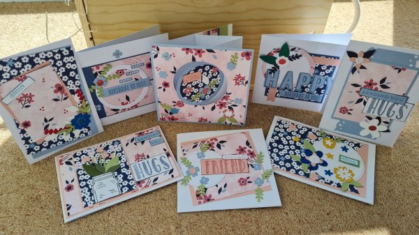 I made 8 cards from this sheet of 12 x 12 … not a large amount but loved using both sides of the dsp so some got 2 panels not just one!