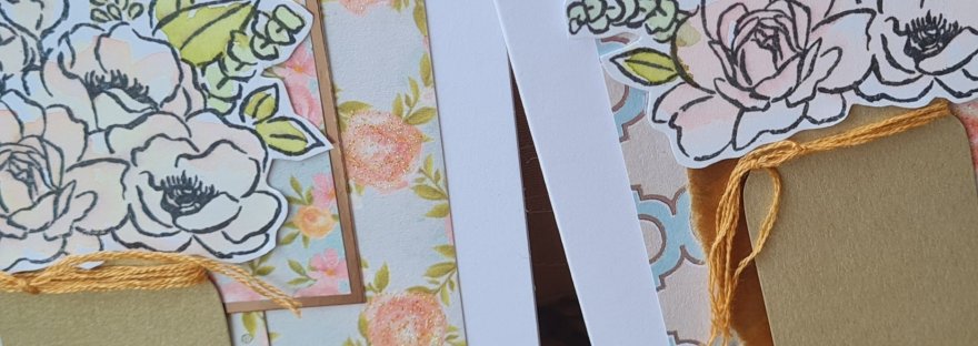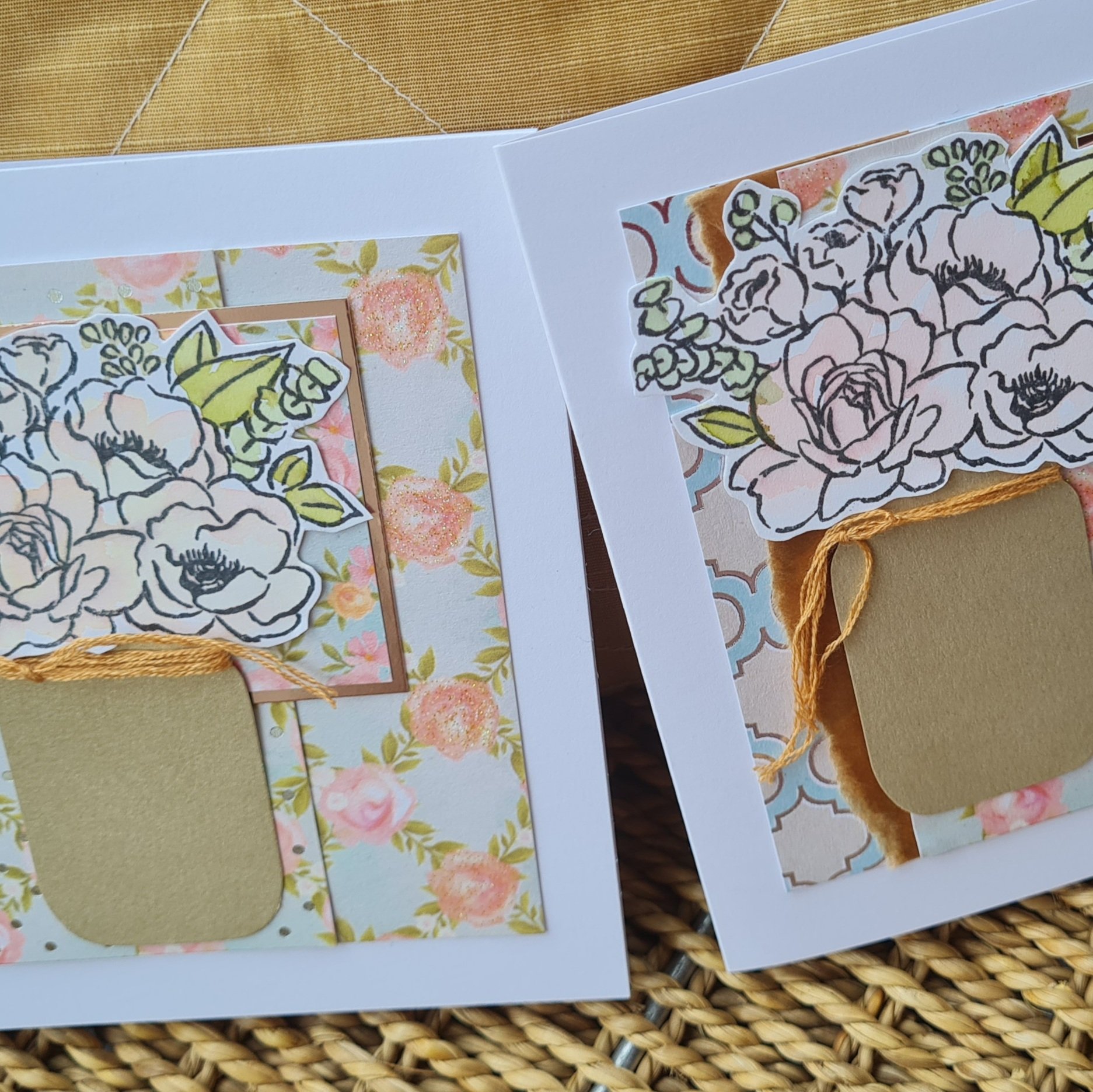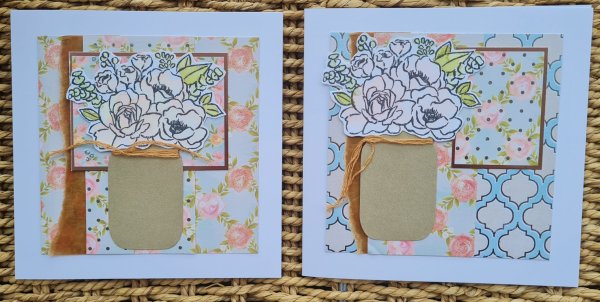 So I’ve been very much MIA the last couple of weeks. Firstly a holiday and also been super busy with work. Today I managed to tidy the craft desk a bit and made some cards using gifted papers from a swap (thank you whoever sent these… they are so pretty) and Jar of Flowers stamped images I had stamped and coloured some time ago.