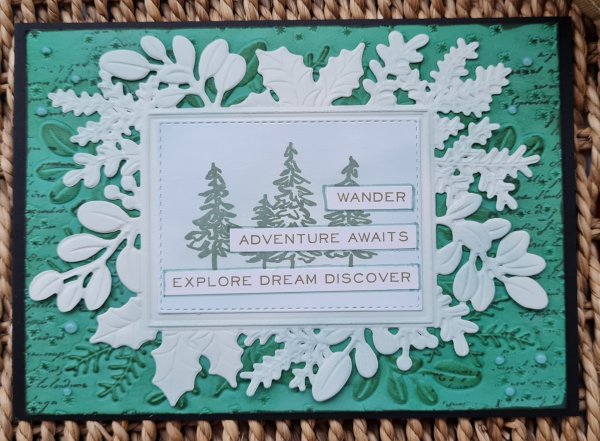 I also blended the panel with the trees so give it a misty look and added sentiment stickers from Tim Holtz to finish off.