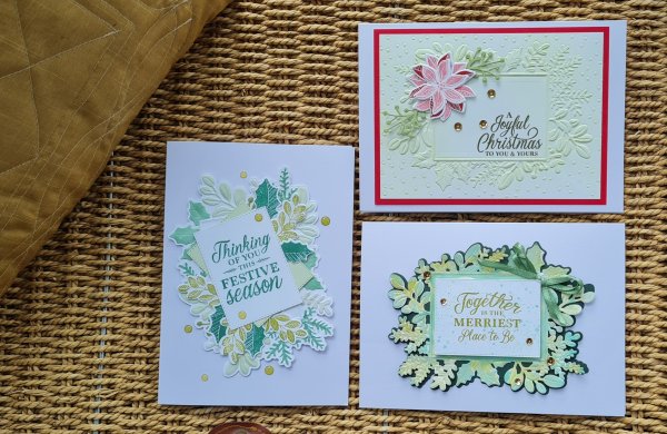 I made these cards over a couple of days and filmed the process for my YouTube channel. I had so much fun playing with the Merriest Moments bundle. The hybrid embossing folder has captured my mojo and I’ve got so many ideas for playing with it.