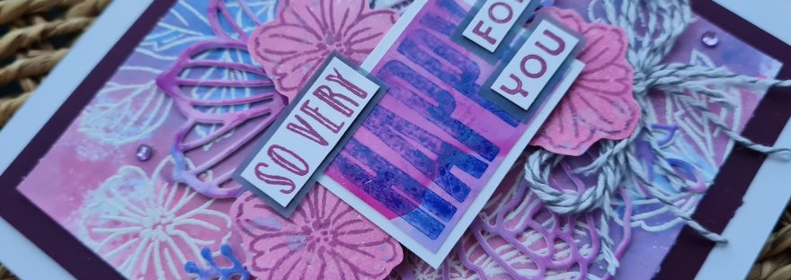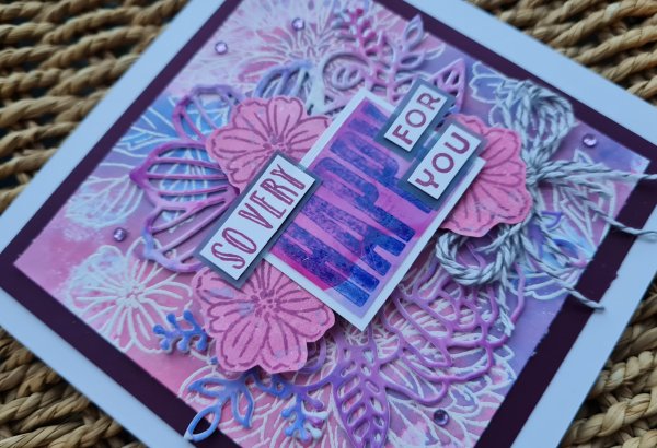I stamped a few of the smaller flowers for the card too and inked up using the same colour oxides.