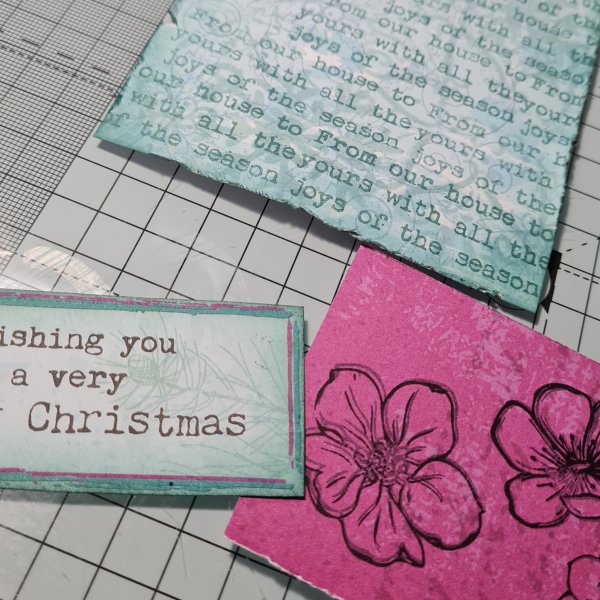 I edged each of them with the Speckled Egg distress oxide and then started playing with stamps and stencils in the kit to make them different.