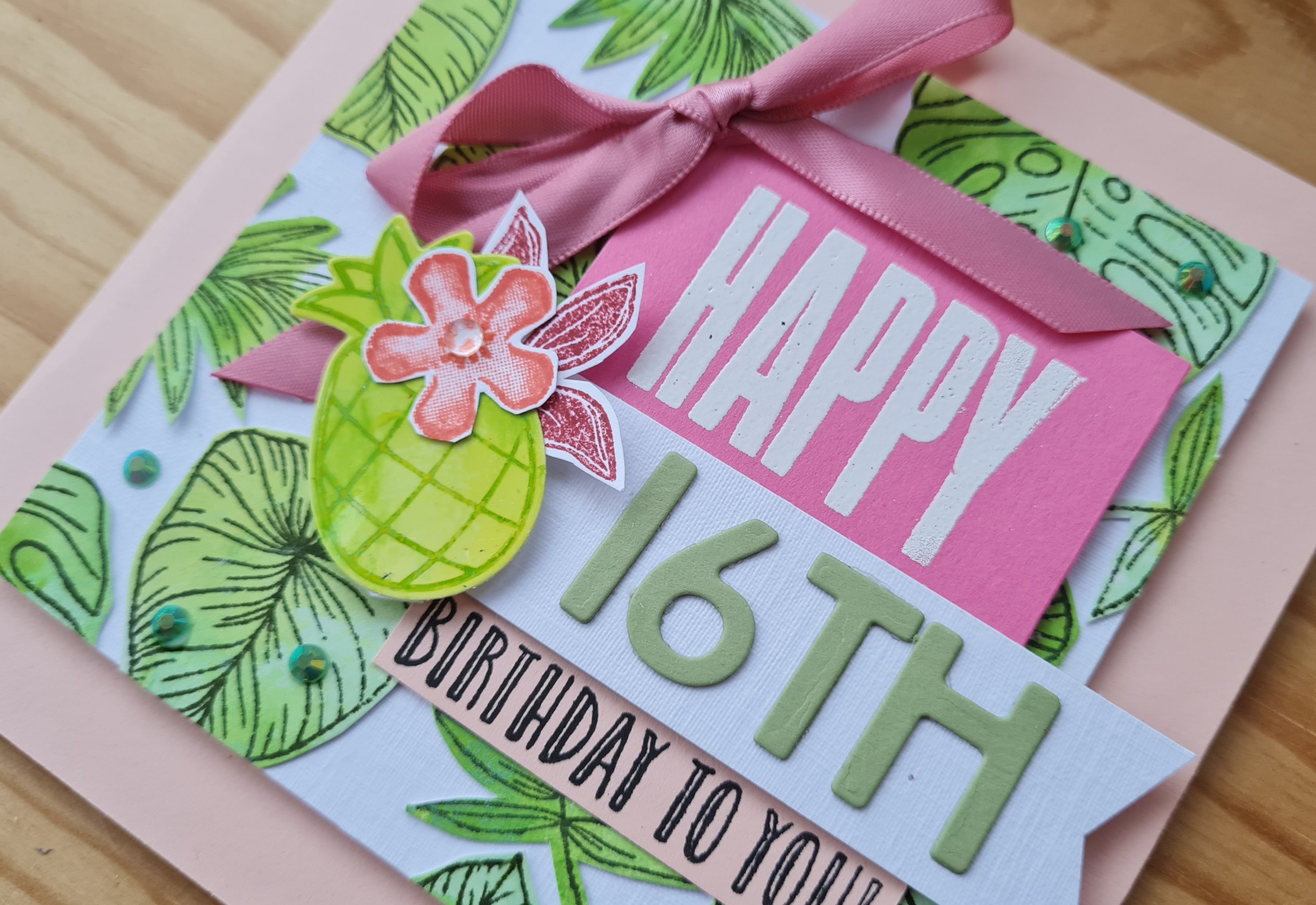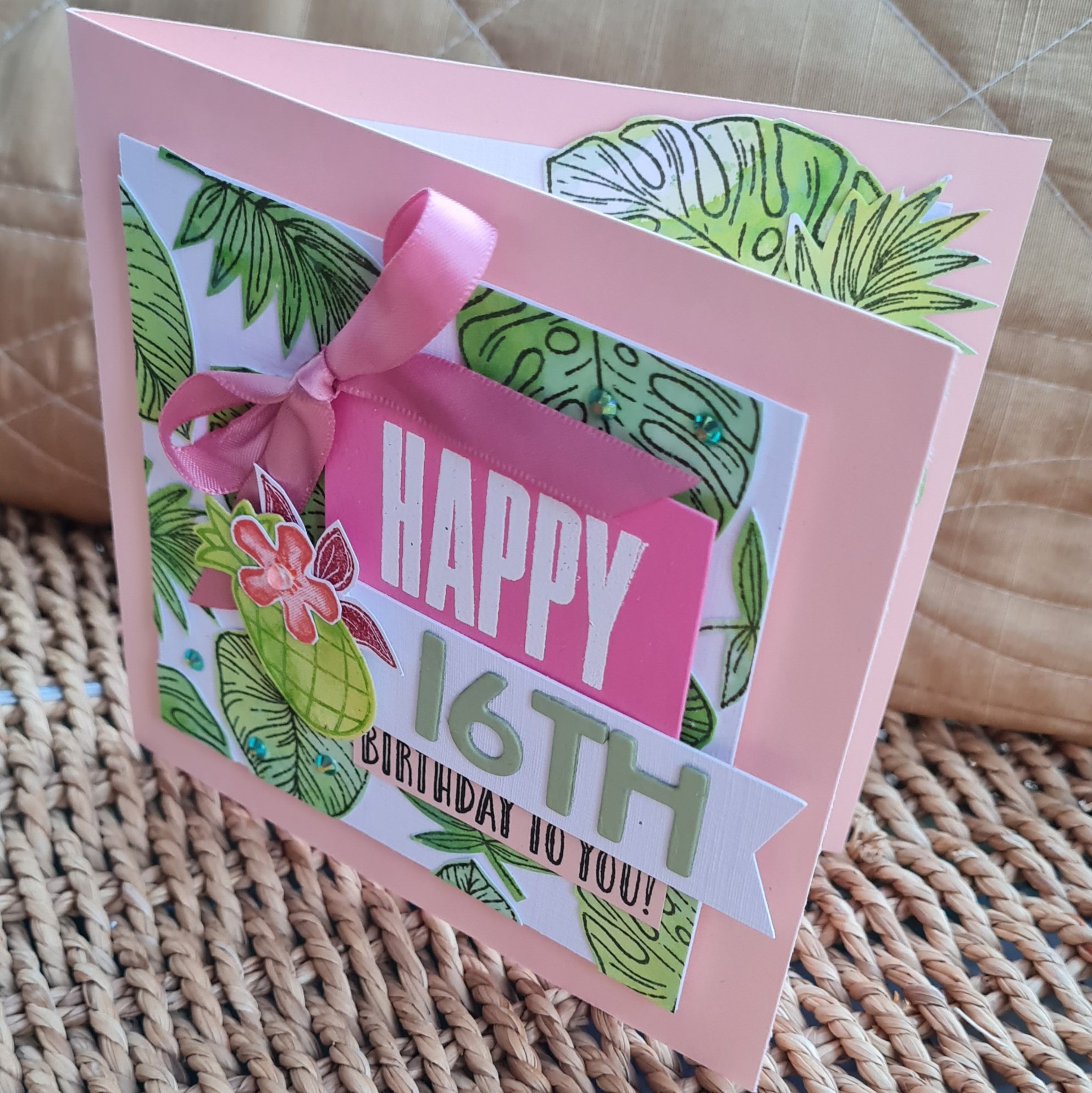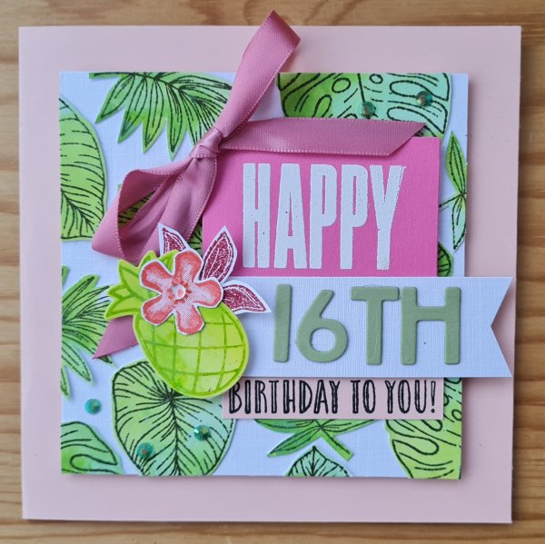 This month I made yet another 16th birthday card, and even though this was for Niamh’s birthday in November I wanted it to be bright and cheerful and tropical.