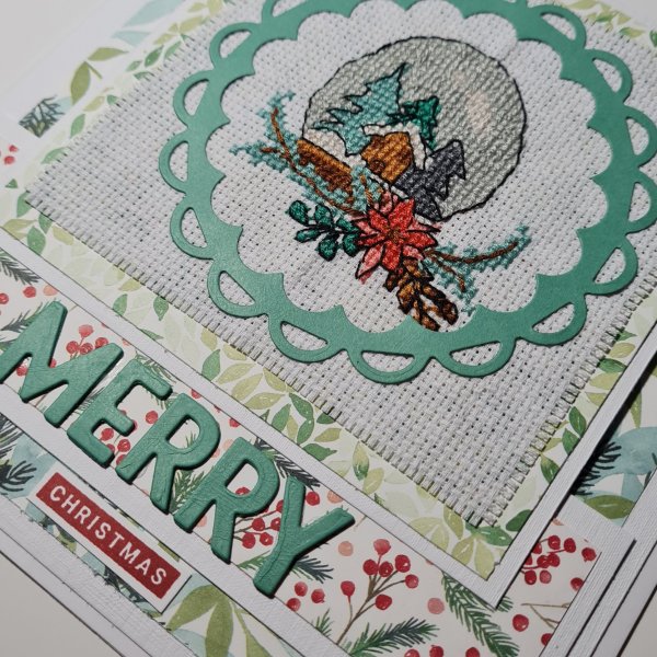 To be honest I made the cross stitch in 2020 but never found a use for it… until now! I decided it worked will with the Painted Christmas dsp and just created a frame from some old spellbinders dies and the sentiment from the Playful Alphabets dies and last years favourite stamps… Peace and Joy.