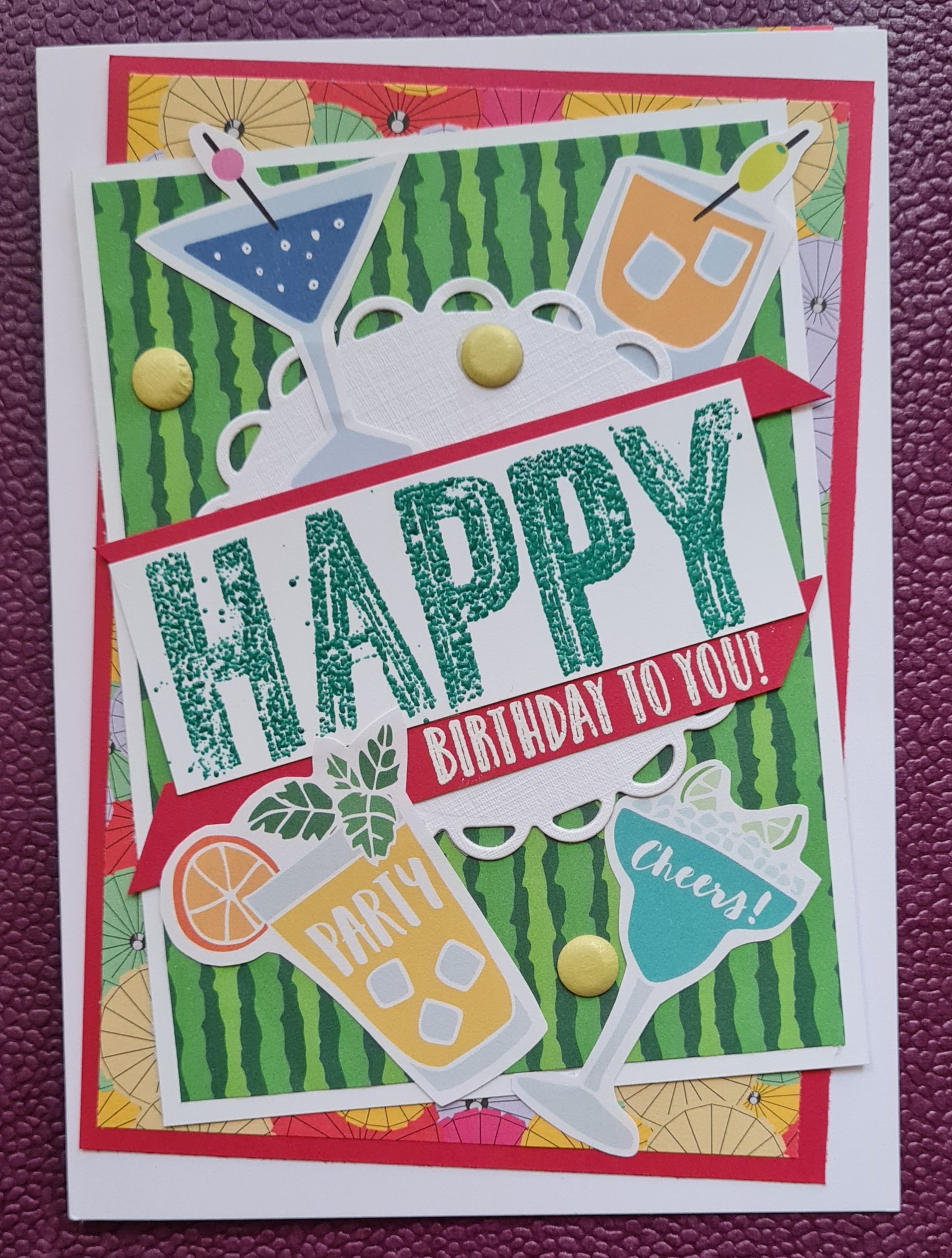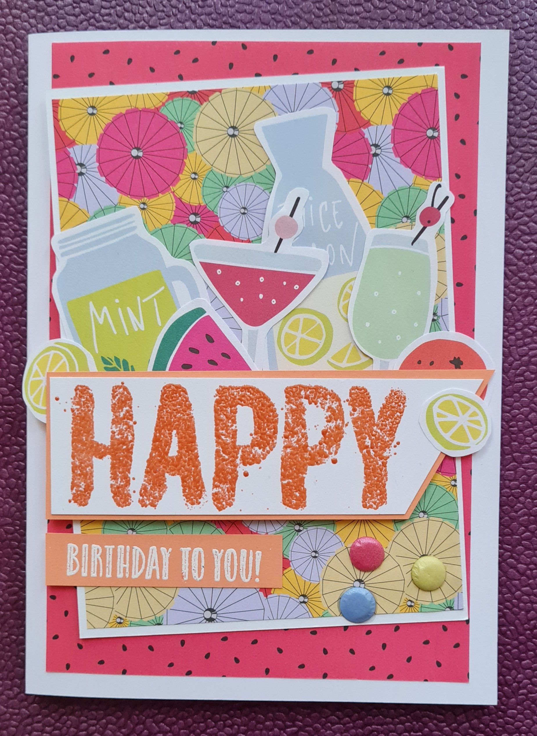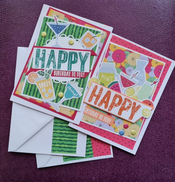This month I had bright cocktail themed papers and images to play with. Wow these are certainly bright and cheery!