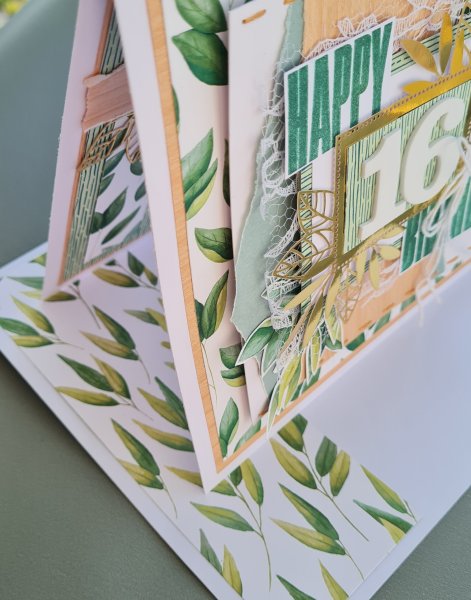 I added some hand sewing and some lace (to reflect her love of sewing and textiles) and the fussy cut leaves reflect her wish to have lots of plants in her room (albeit fake ones as none of us are good at looking after plants).