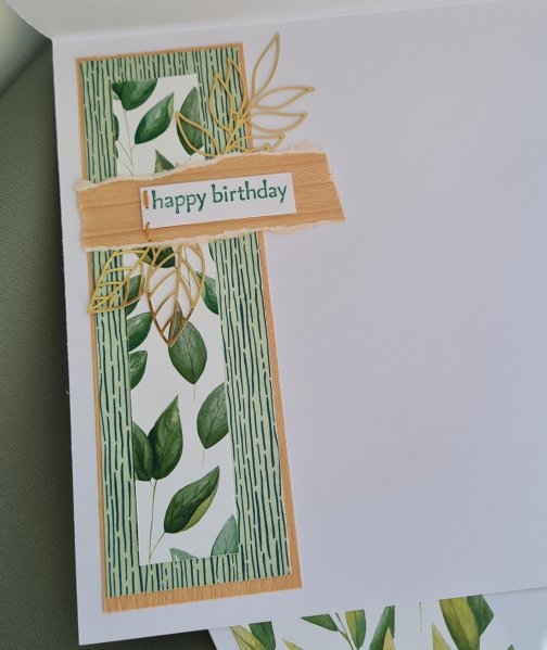 Green has become the colour of choice of late and we have just finished decorating her room with green panel effect wallpaper and light green walls. So I decided to use some of the last pieces of the Forever Greenery dsp I had in my stash and the gold die cut to create this 7×7 card.