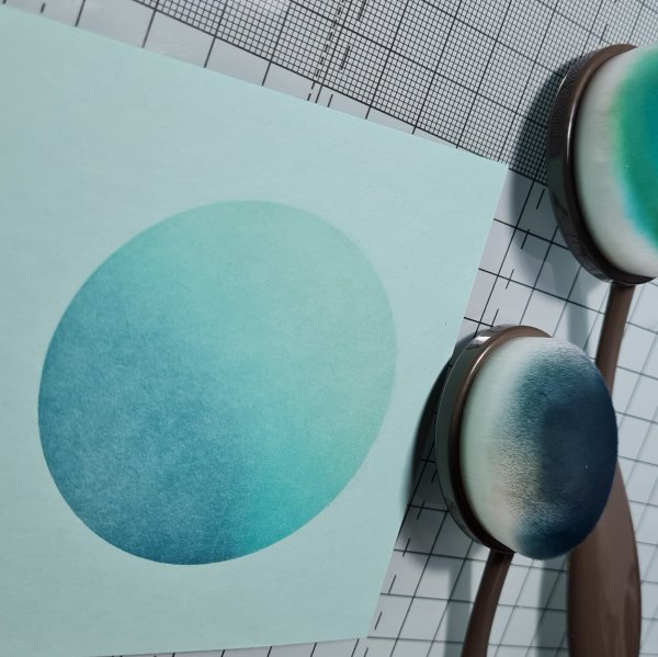I blended from pale blue (soft sea foam) to turquoise (coastal Cabana and tempting turquoise) to dark blue (night of navy).