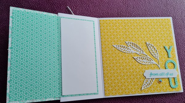 1. So beautiful Catherine. I love the delicate white die cuts against the yellow and white DP! It’s wonderful the way it follows through to the inside too. Take care! 🙂