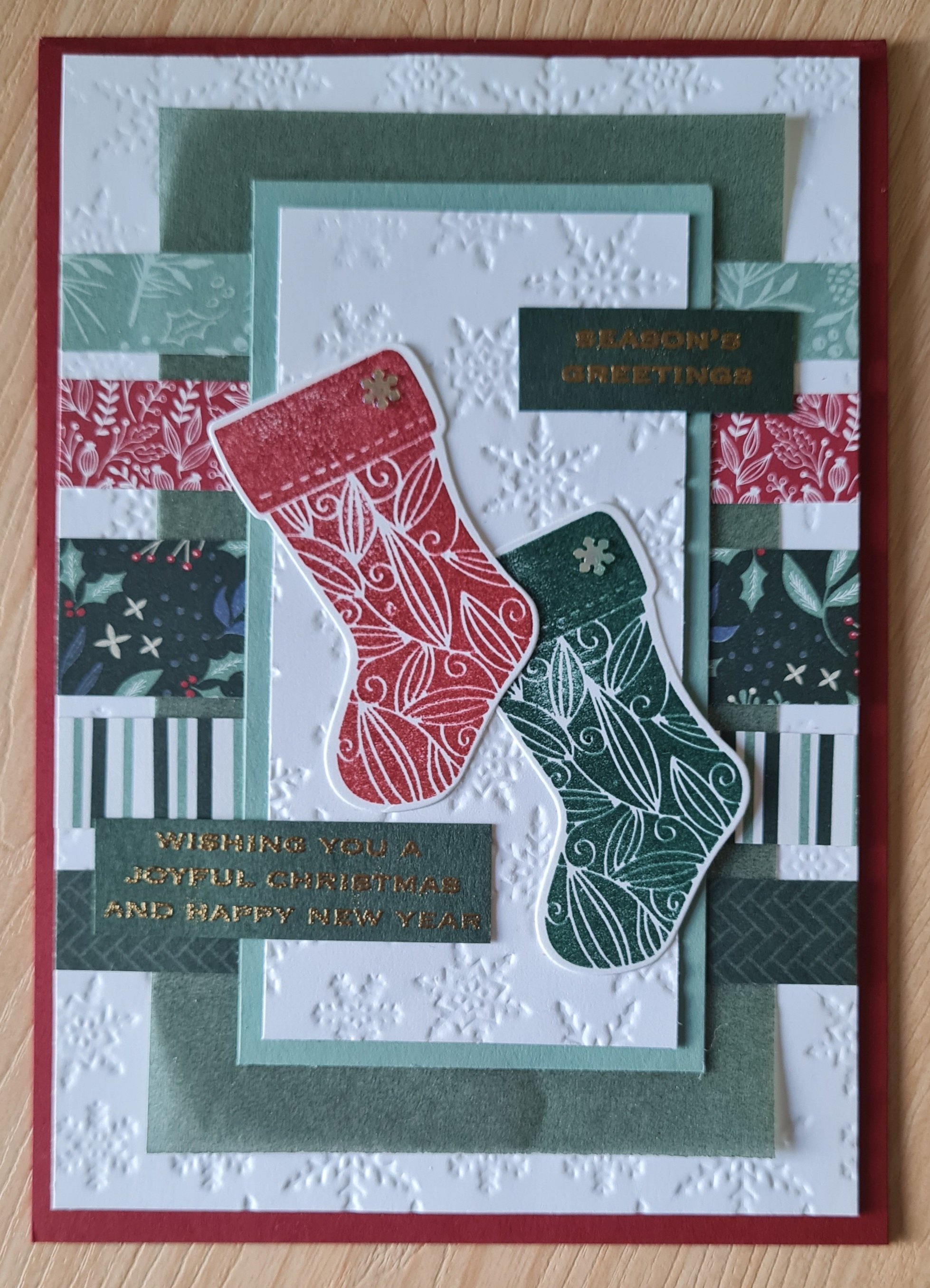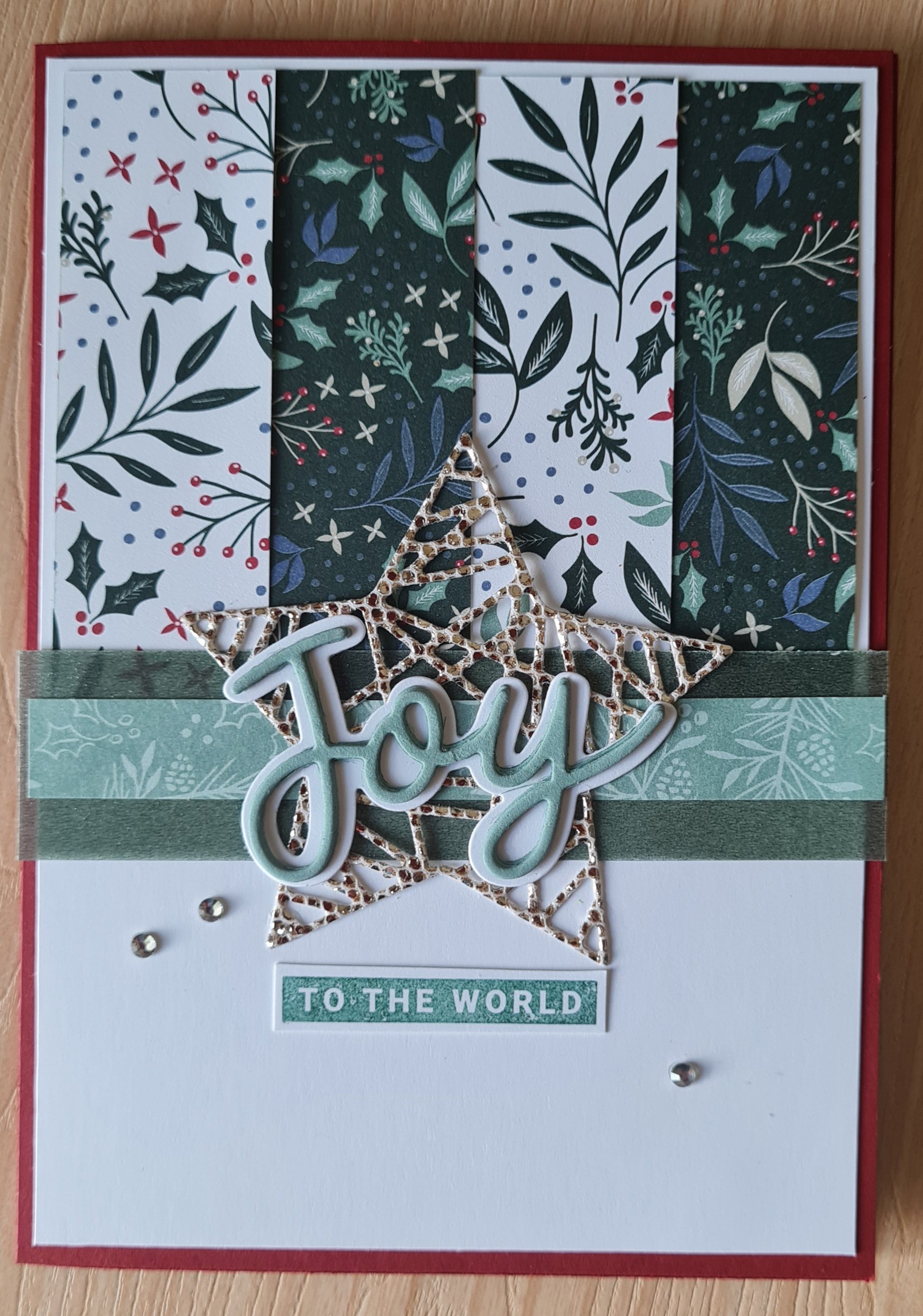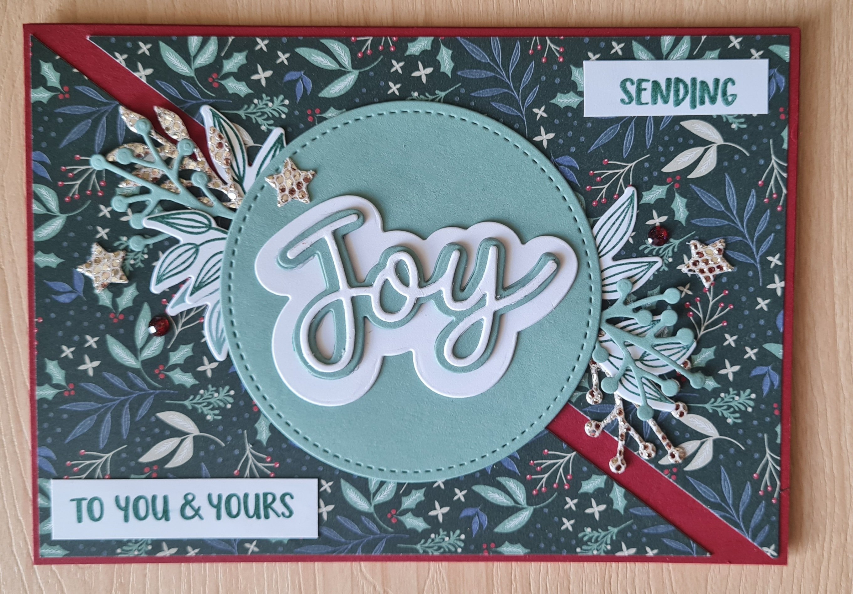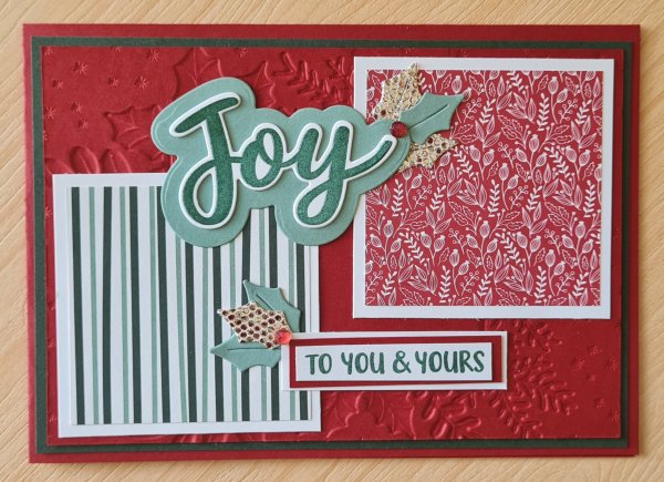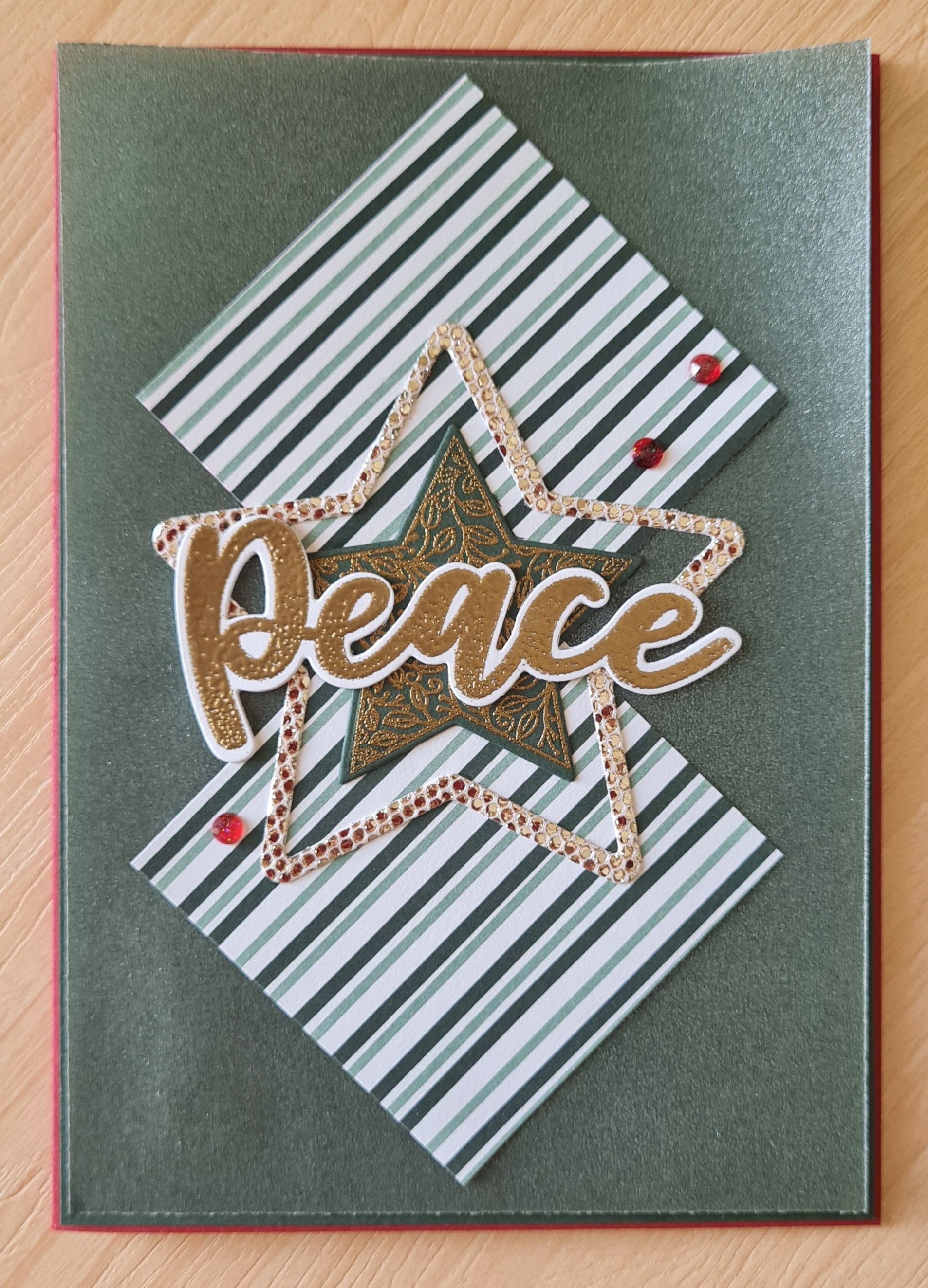 I chose the Tidings and Trimmings papers and stamps and dies for the main focus… but ended up adding other bits and pieces in too like the shimmery vellum and the sparkly speciality paper… I can never resist going a little mad with those fab Peace and Joy stamps and dies either and felt a big word was perfect as the focus of a few of the cards.