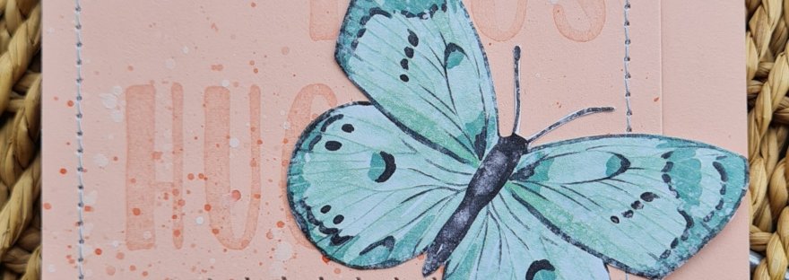 I did take inspiration from Martin at Martin’s Mayhem mainly because I happened to have been binge watching his videos on YouTube recently, I love his style. So this was probably mainly inspired by this video. But I used the Butterfly papers that came with Butterfly Brilliance and then the Oh So Lovely stamps for the hugs.