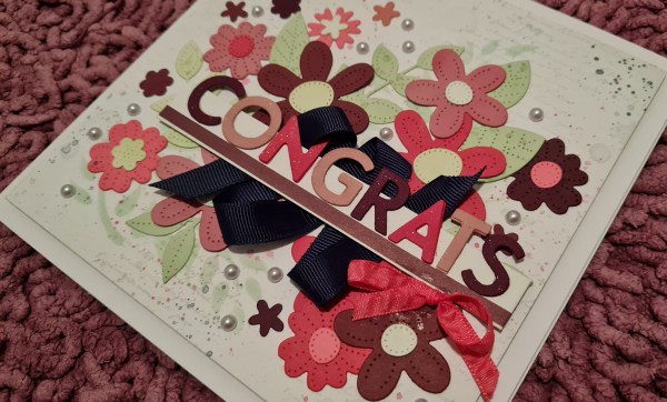 So the card is one I made for my cousin to celebrate receiving her OBE. She was awarded it quite a while ago but as a result of Covid restrictions had to wait quite some time for the actual ceremony. Again due to restrictions (maybe they have always done this though I am not sure) only one guest was allowed to accompany her and my Uncle was the one who picked the name out of the hat so he got to go with her.