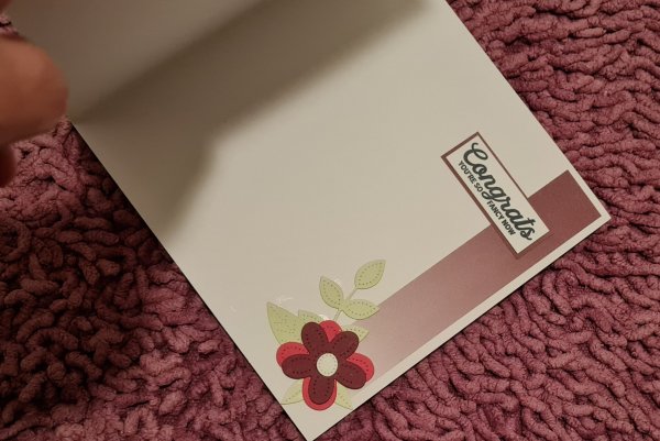 Inside I took the sentiment from the In Bloom stamp set and added some panels of the Oh So Ombre paper to create some interest. I also added a flower and leaf cluster… after all I had got LOTS already die cut. This finished off the inside of the card.