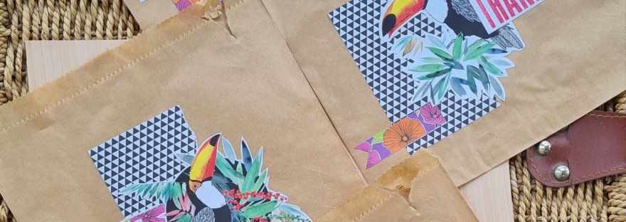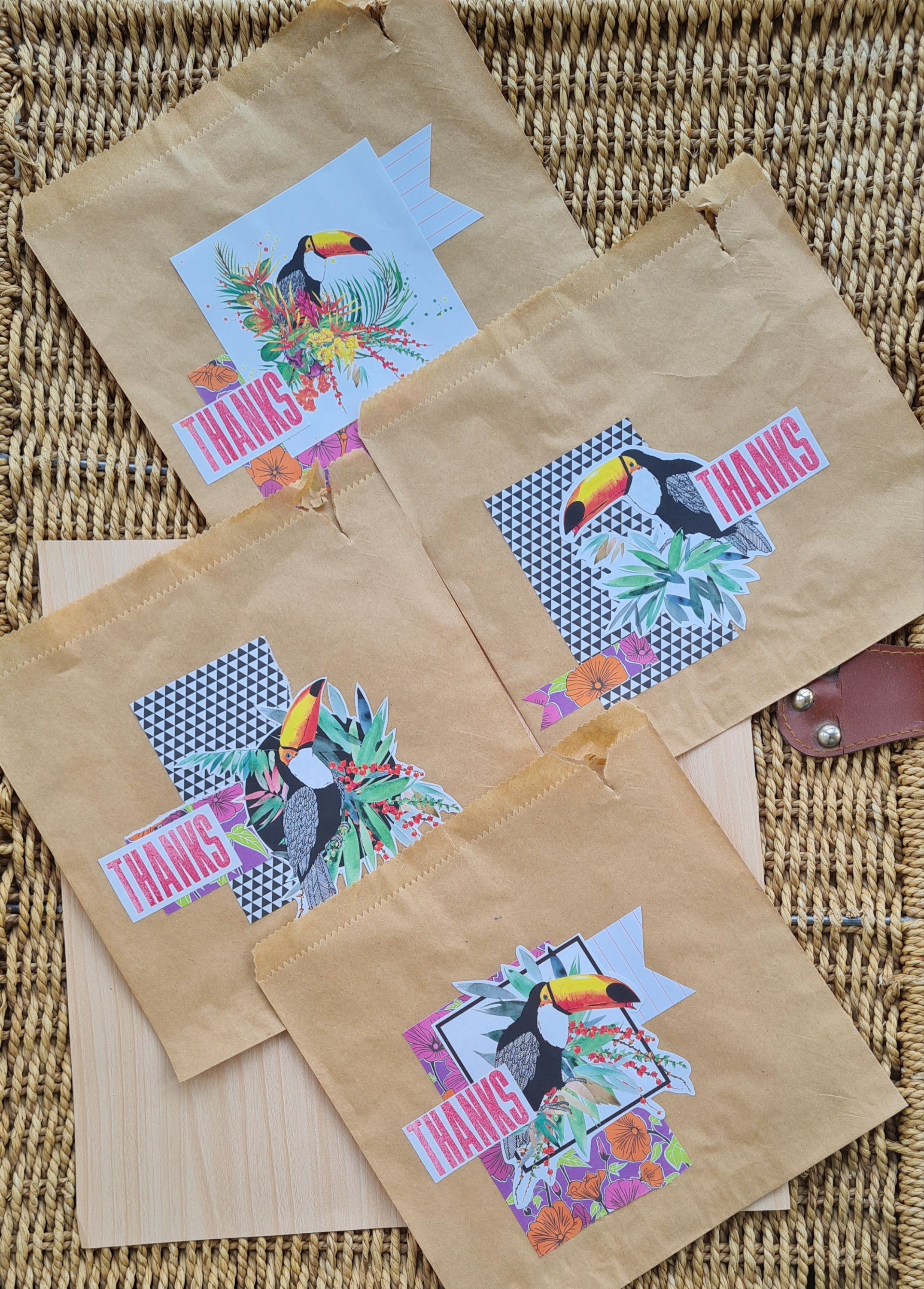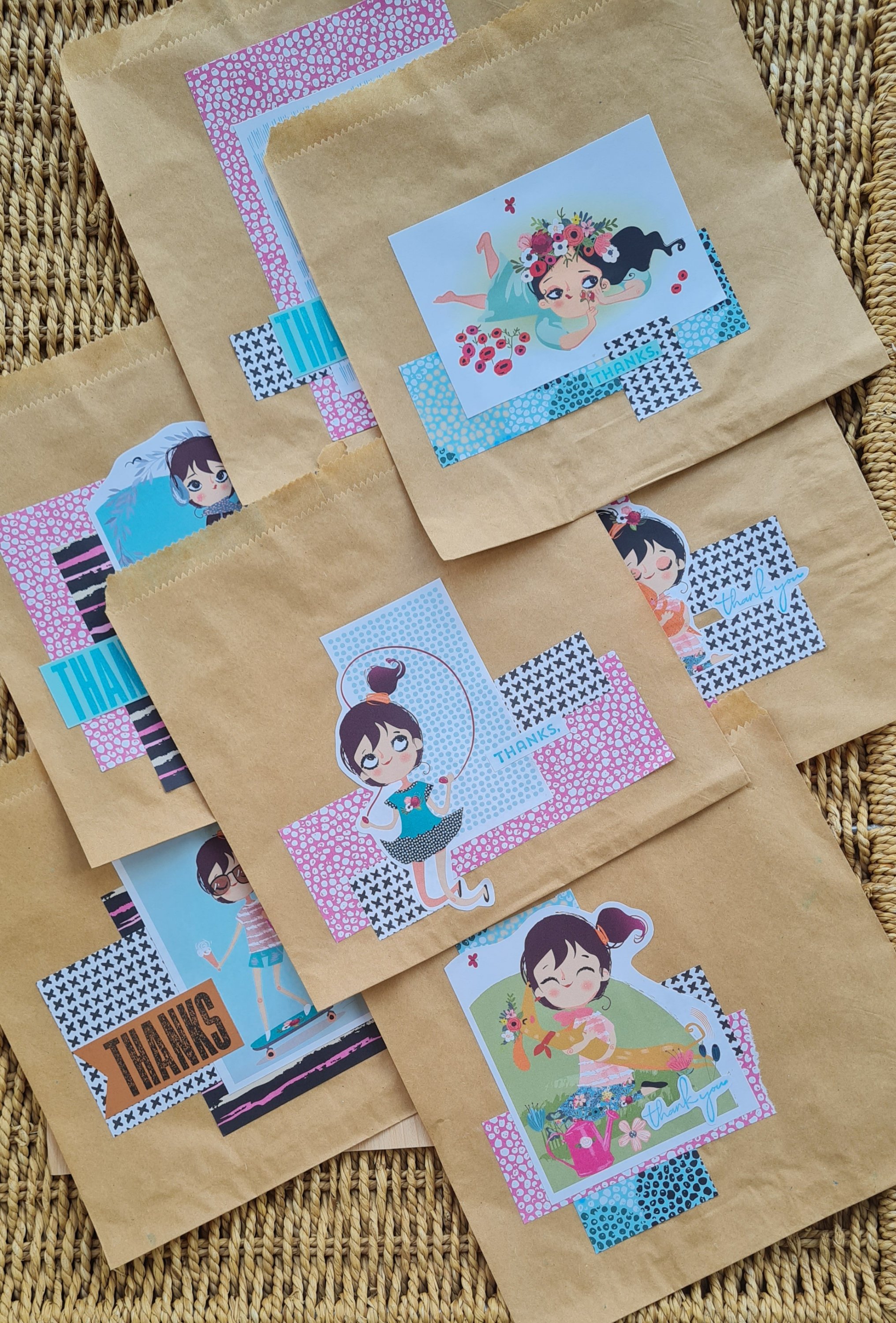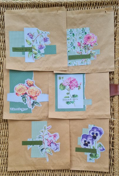 As I’ve mentioned previously I have been selling a few bits and bobs from the stash that I no longer use and I’ve been added a little thank you card and decorating a bag to send with the sold items. I had a full afternoon of sorting through old papers and leftover scraps that were on the table and made lots of bags for the next batch of sales.