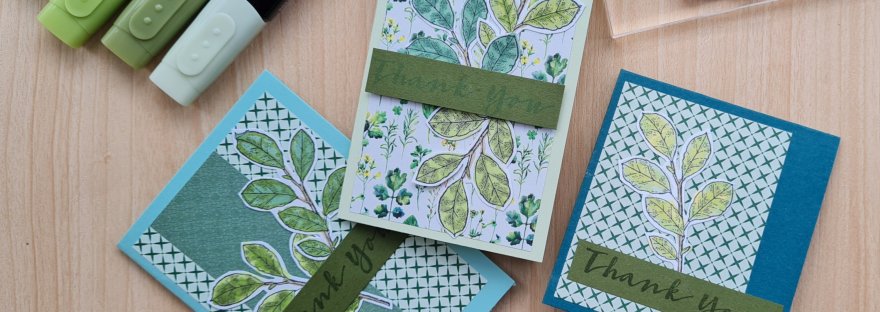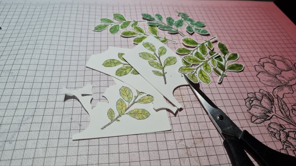 Last week I did some stamping and colouring with no actual outcome in mind. I chose to stamp the leaves from the Cottage Rose bundle and then colour them using the Stampin Blend markers.