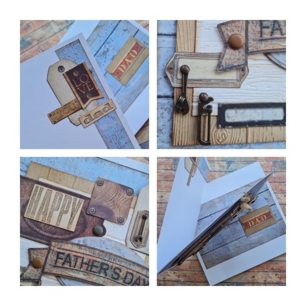 Once everything was cut out (including the die cut letters for Dad which I had stacked 3 deep) I inked all the edges and the embossed panels using Vintage Photo.