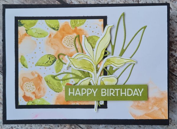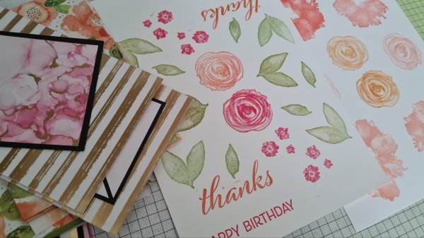 As the papers were a mix of Pale Papaya and Polished Pink and I don’t own those inks I did a mix of Calpyso Coral, Melon Mambo, Crisp Canteloupe and More Mustard to get some colours that would compliment the Pale Papaya in the dsp.