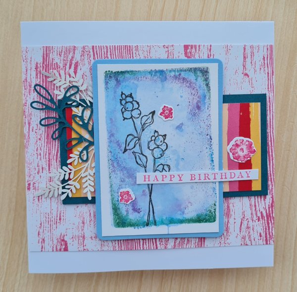 A scrap of the Pretty Peacock cardstock, a die cut and Forever gold laser cut and a few Artistically Inked flowers to embellish… with a cute little sentiment … and jobs a good’un … on the cardmaking front that is… the desk tidying… not so much!