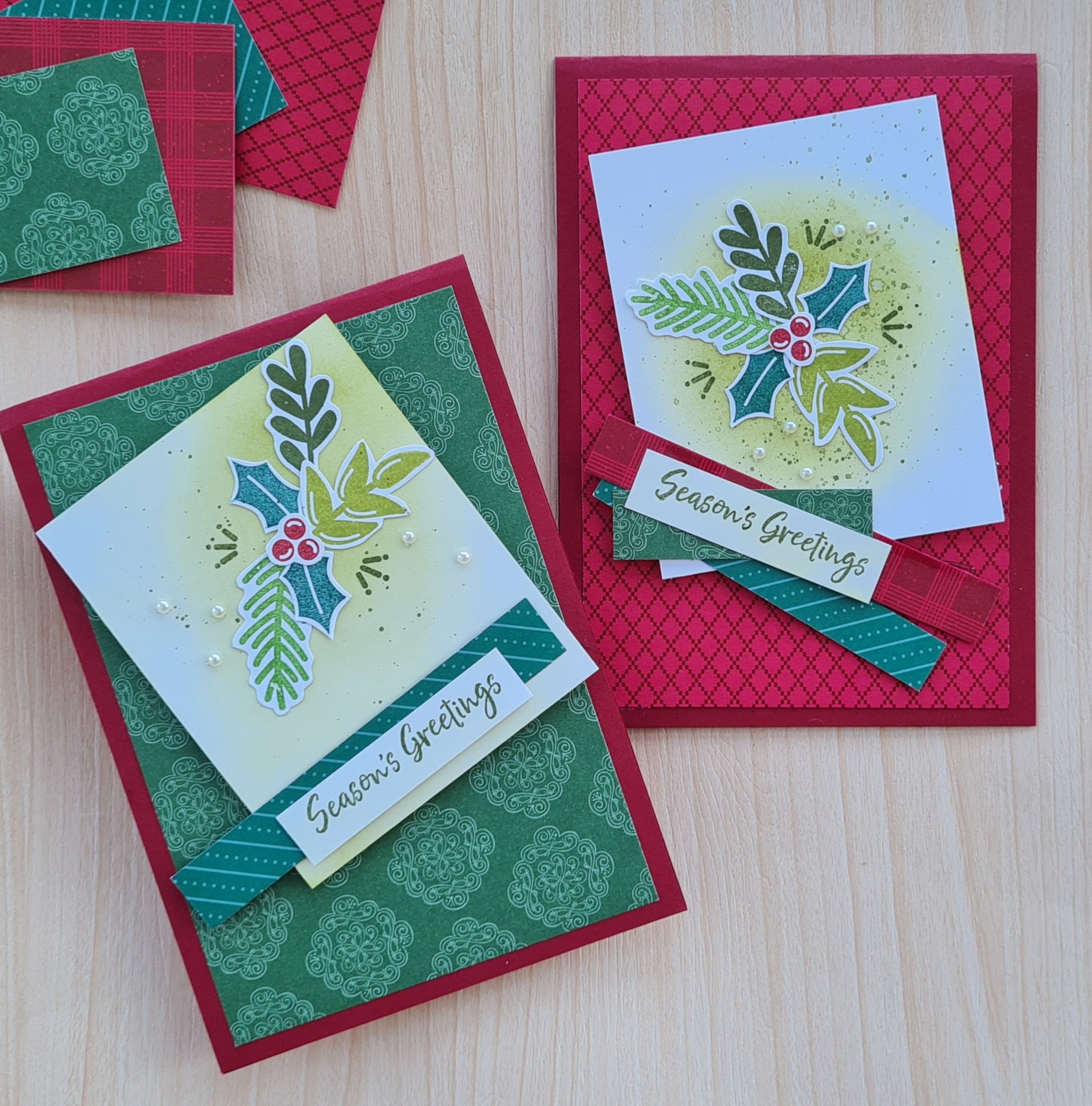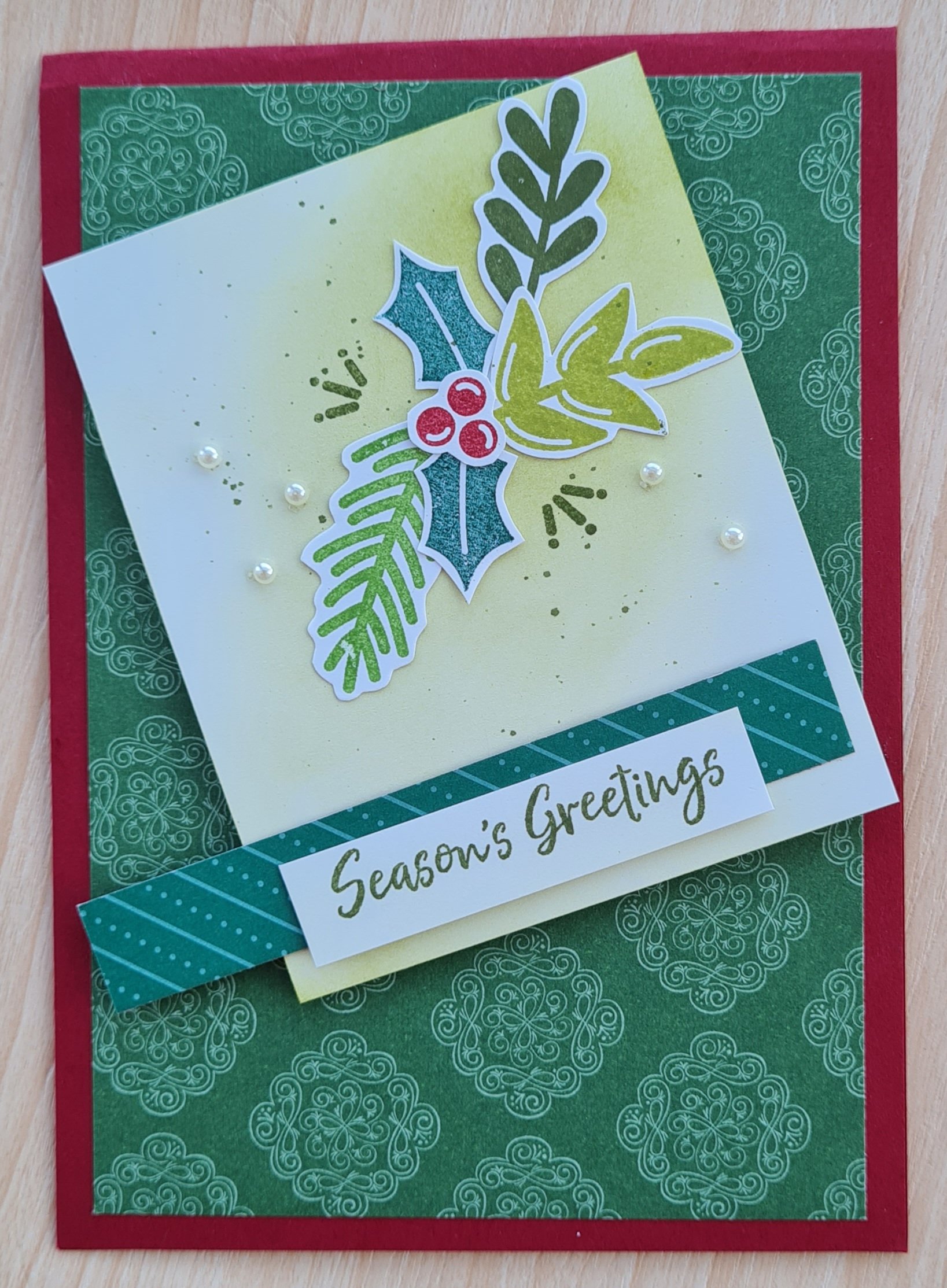 I’ve been using the Christmas Season set a lot for foliage recently so decided to change it up for these and used the foliage from the retired Peace and Joy which has been a favourite set for quite a while but mainly for the words. So decided to give the other stamps a little more attention!