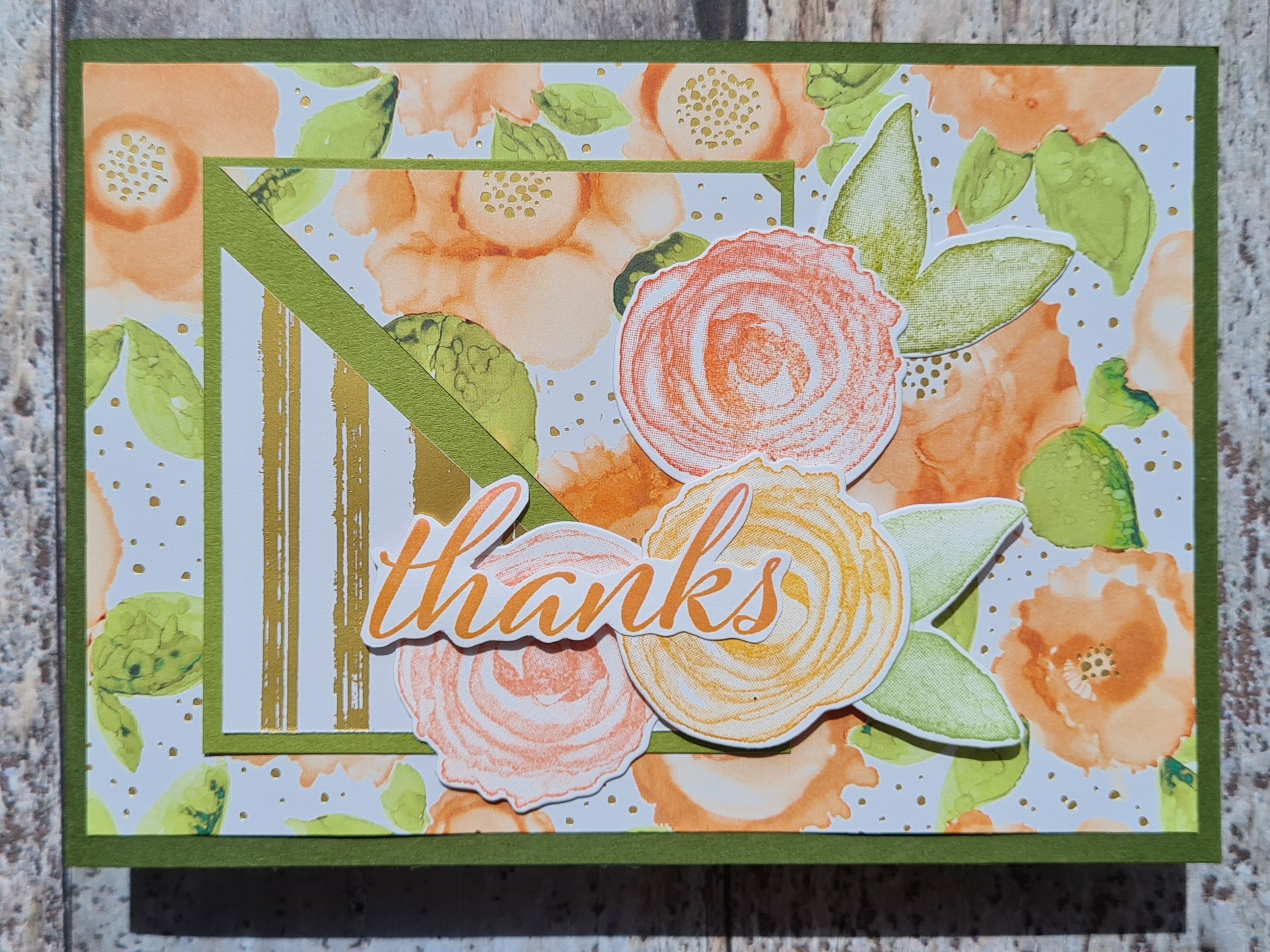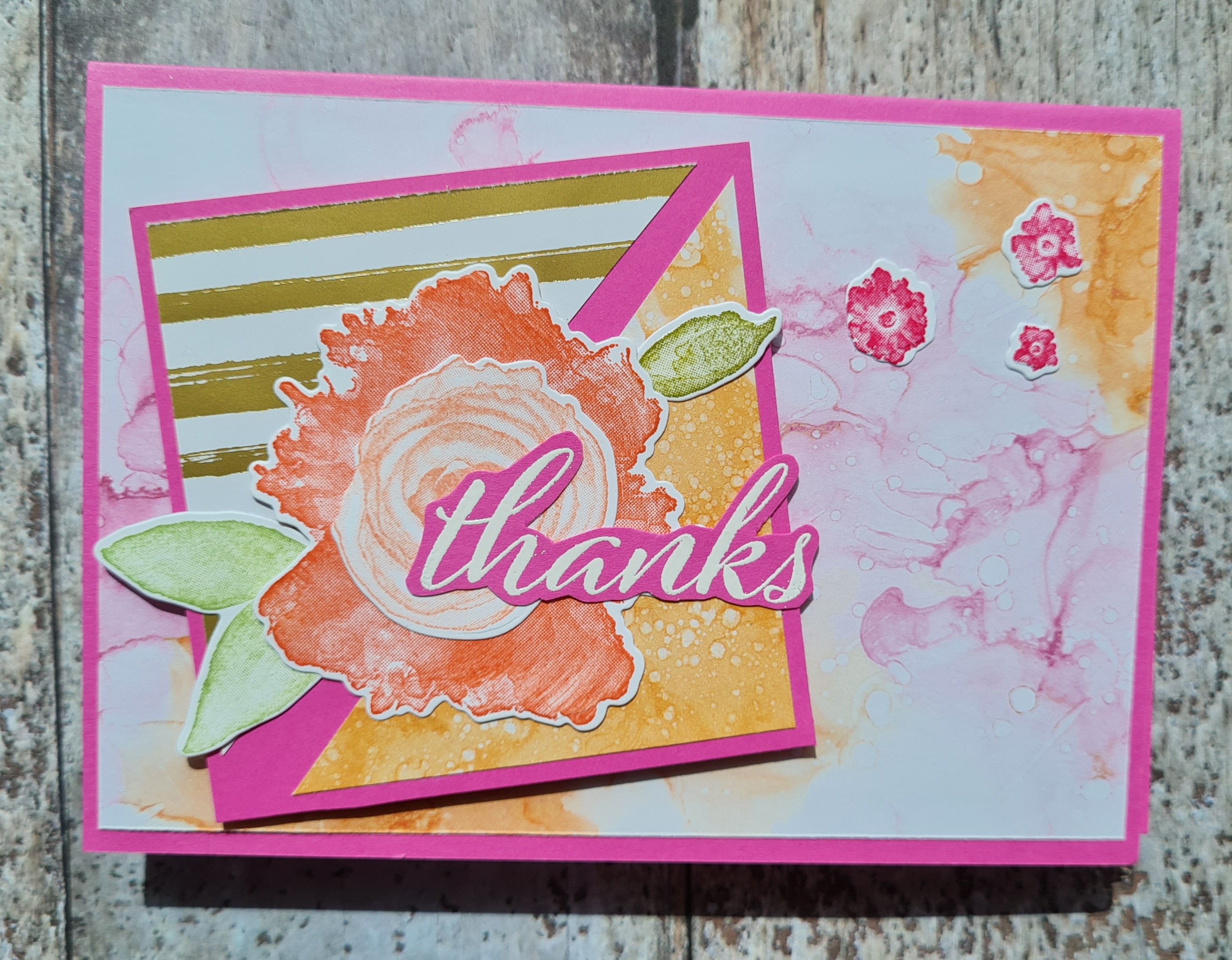 As these also had the pop of Pale Papaya in the patterned paper I used the same peachy themed colours for stamping the flowers … and one of them also got a few of the smaller flowers stamped in Melon Mambo.