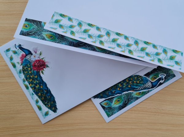 Took the two different papers and kept it simple… just made them into background panels and the remaining bits were cut in strips for the inside and the envelopes.