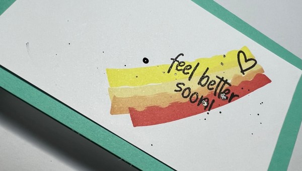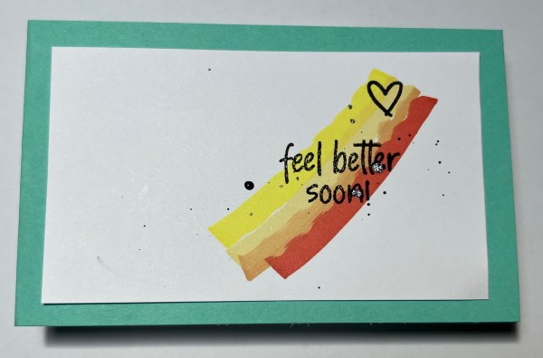 I made this cute little get well note, not because I needed it but because I had scribbled some promarkers onto the paper and I thought it would look good with a sentiment stamped on it so tried out a new concord and 9th set and this is the sentiment I plumped for.