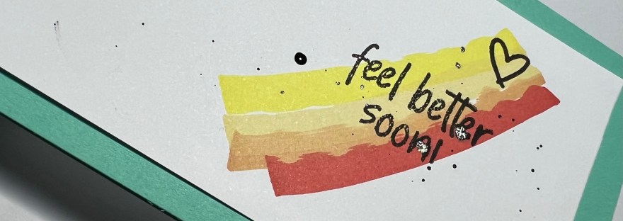 I made this cute little get well note, not because I needed it but because I had scribbled some promarkers onto the paper and I thought it would look good with a sentiment stamped on it so tried out a new concord and 9th set and this is the sentiment I plumped for.