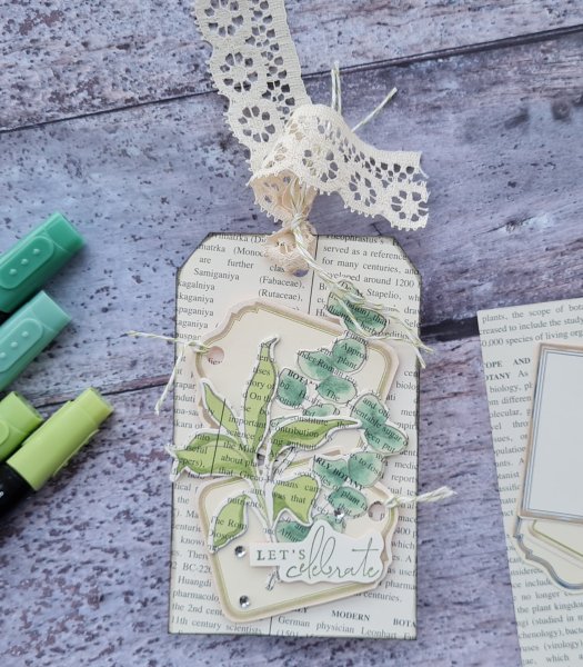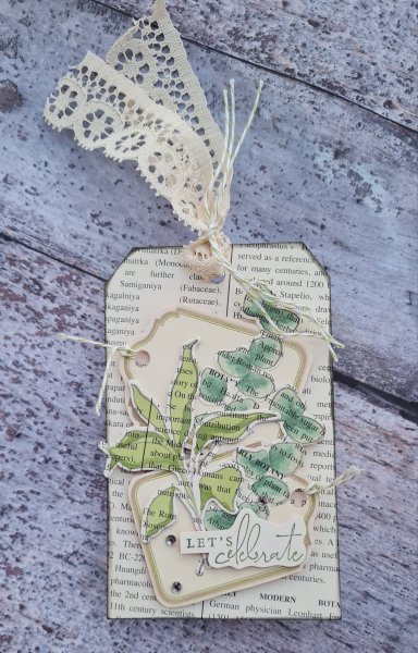 Of course because it is a tag I also added some lace trim to the top with more of the twine that has a green running through.