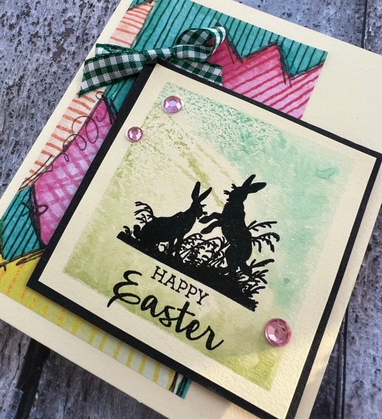 I’m still going with my craft stamper magazine stamps sort out and today I have an Easter card I made using the cute Hares stamp … which I will say straight away has gone straight into the keep pile.
