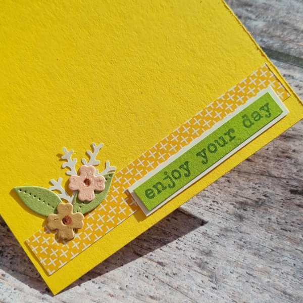I just picked out the ones that went with the colour scheme and it was easy to create these little flower clusters. I added in the white die cuts that I think are Memory Box dies but I’ve had them so long I have no idea and certainly don’t own the die to check. This helped soften the slightly more graphic shapes of the leaves.