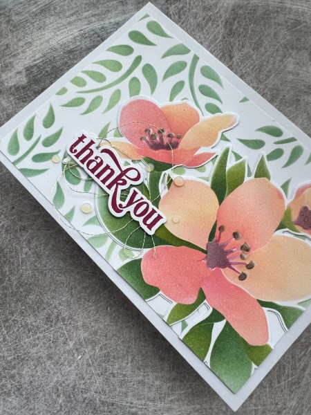 There is another stencil in the set that adds more dimension to the flowers and leaves but decided to keep this quite flat … I also love the colour of these inks from Concord and 9th and how well they blend as they dry.
