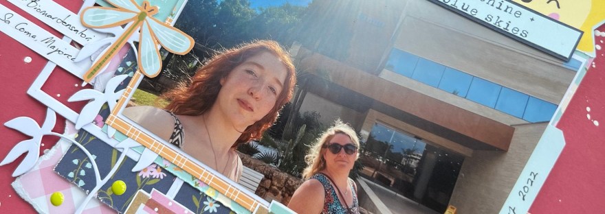 So this past week I’ve been posting projects that were made ahead of time because I’ve been pretty immobile with a bad dose of ‘digestive issues’ … best the less said about that the better! But on Friday after a trip to the doctors I managed to summon an hours worth of energy to play with the papers that were left from the scrapping I had done for Helen’s hop and decided to scrap the photo I had originally chosen for the papers but ended up not using.