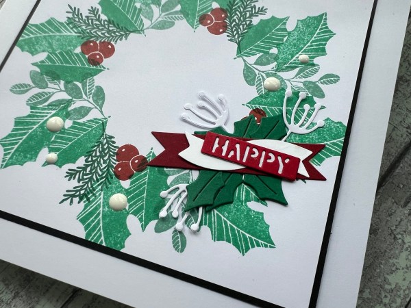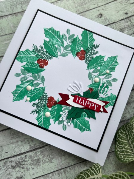 This card is probably the easiest card I’ve made in sometime – and it’s because of the wreath builder template I used. Mine is a copy of a Gina K type of one but it was all I could get hold of at the time I bought it – it has also been in my possession for a long time and I haven’t been using it! That changes now because I’ve realised how ridiculously easy it is to use!