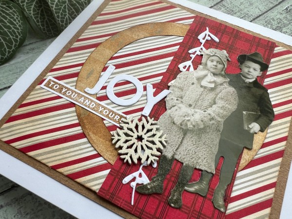 My first card I wish I had changed which paper went on the top to the less patterned plaid as then the die cut would have stood out more.