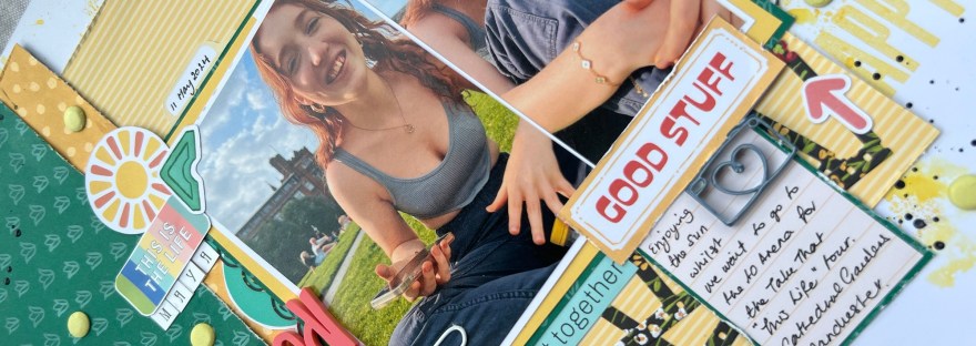 Love the way the title worked – so pleased I remembered when I came to finish the page (I did it in two sessions) that the box had this in it as had been struggling with titles having not got the right letters in the right colours.