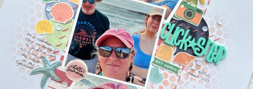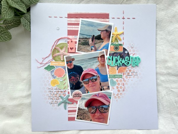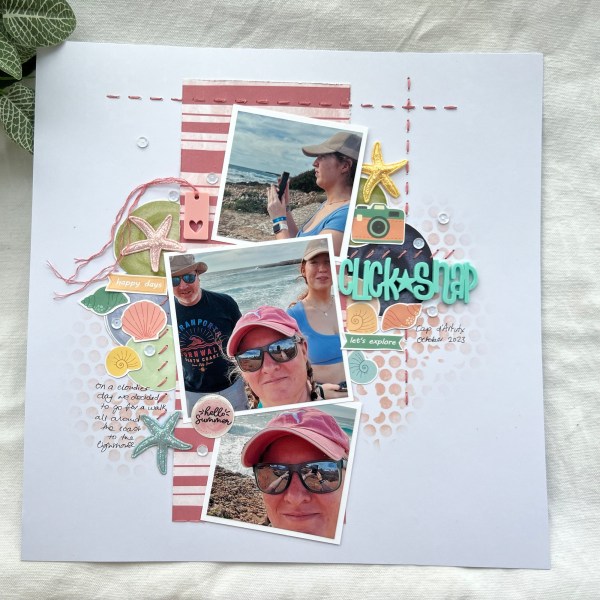 I decided to use one of the stencils in the background with some tattered rose distress ink – I thought it worked with the beach vibe!