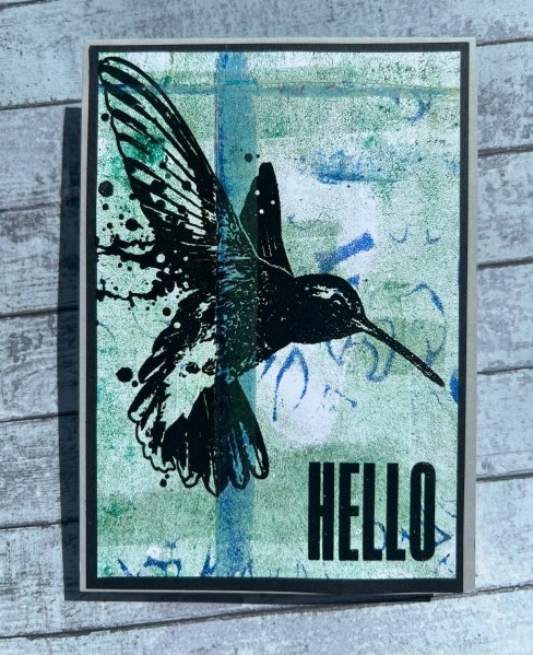 Gelli print, embossed stamping of the two cards, a mat and a card blank! Jobs a good’un!
