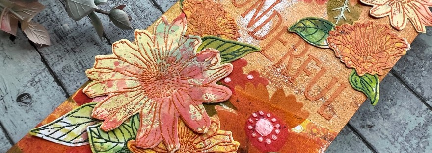 All the leaves were stamped and embossed with green powder and the flowers with an orange powder.