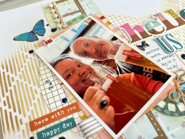 I definitely stuck closer to the original than I normally do but moved the title and I added the stencilling and few other bits and pieces using stash I bought at the crop. I can’t see the kit yet on the website so can’t link it yet but here is a pic of the original layout…