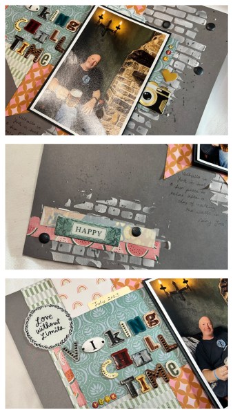 Hello! I did some more scrapping – this time one of the page kits I bought in January from Hey Little Magpie – and although the layout stayed similar in terms of the sketch I totally changed the page by changing the background from a white 12×12 to grey. I’ve saved the white piece for using with leftovers and instead made what was quite a romantic page into something a bit more masculine to fit the photo of my hubby!