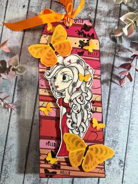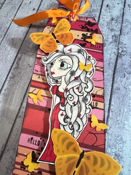 I added the main focal image and the bigger butterflies with adhesive foam for dimension and then the other butterflies I just stuck down with glue.