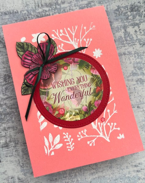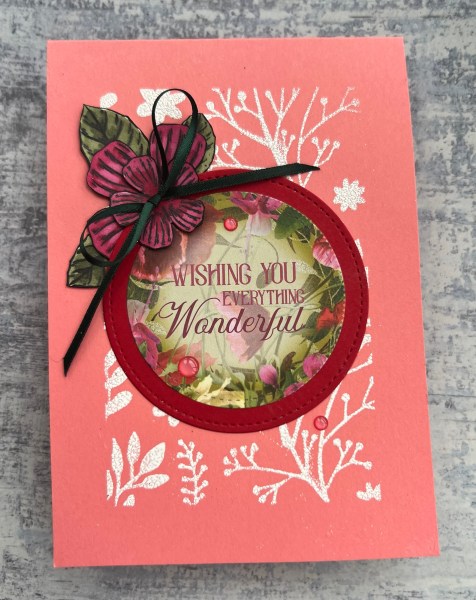 Really love the stencilled background and the beautiful flowers I added to the top left.