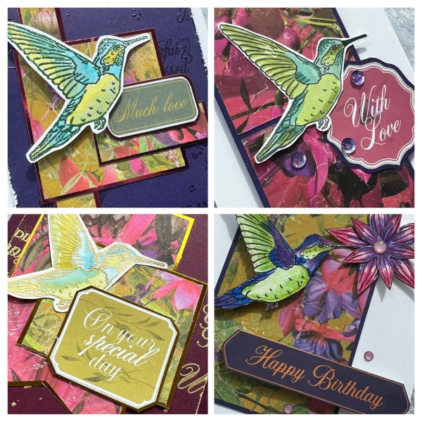 It was so much fun making these and I know the final five will also be easy to put together as the papers are cut, the focal image is coloured and cut – they just need to be assembled- although obviously I sometimes make that a little more challenging by adding to the background a little more! You’ll have to wait and see what I come up with!