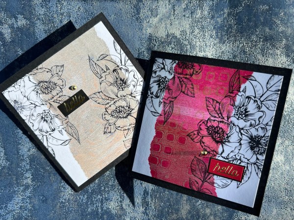 For both cards I then took the glimmer plate that was in with the glimmer machine and foiled just the word hello and added that as the sentiment.