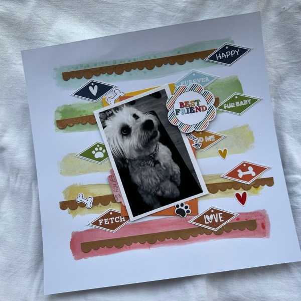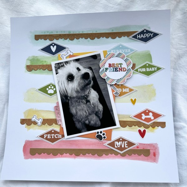 I wanted to create a fun background for the scrapbook page where I was using a black and white photo of my friends dog Barney.