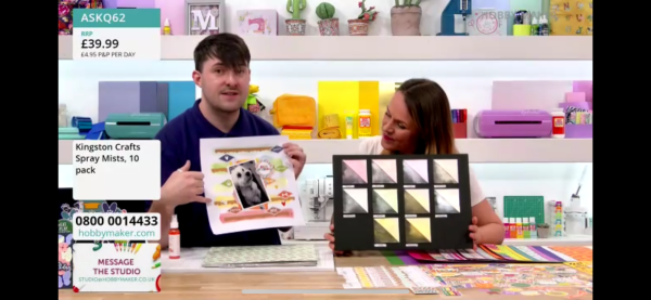 I was absolutely delighted that my lovely Barney page got shown on tv – and hopefully my friend got to see it too! Here is a pic of Martin explaining about the painting of the spray inks on the show!