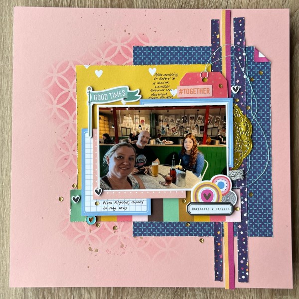 I know this is a mish mash of different products and designs but I think it still works well and given the photo was of us in a very eclectic designed pizza parlour in Oxford it sort of works with the colours in the photo too.