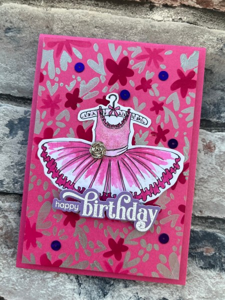 Then I took some pink cardstock and decided to create a fun background using the Altenew layered stencil.
