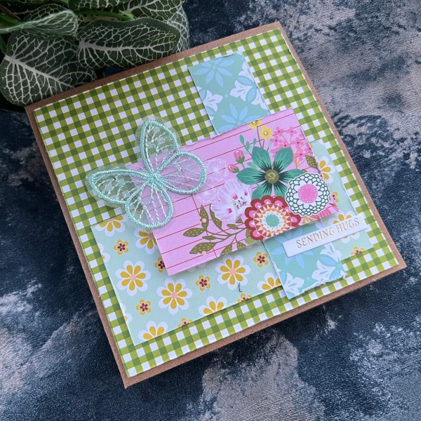The pink card is part of the cut apart that was on the back of one of the papers and I loved it when I saw it so I thought it made a good card topper.