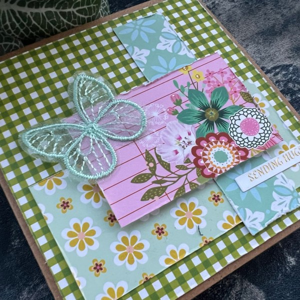 I had some scraps leftover from the pages I had made (one of which I will share on Saturday) and so I made a card.